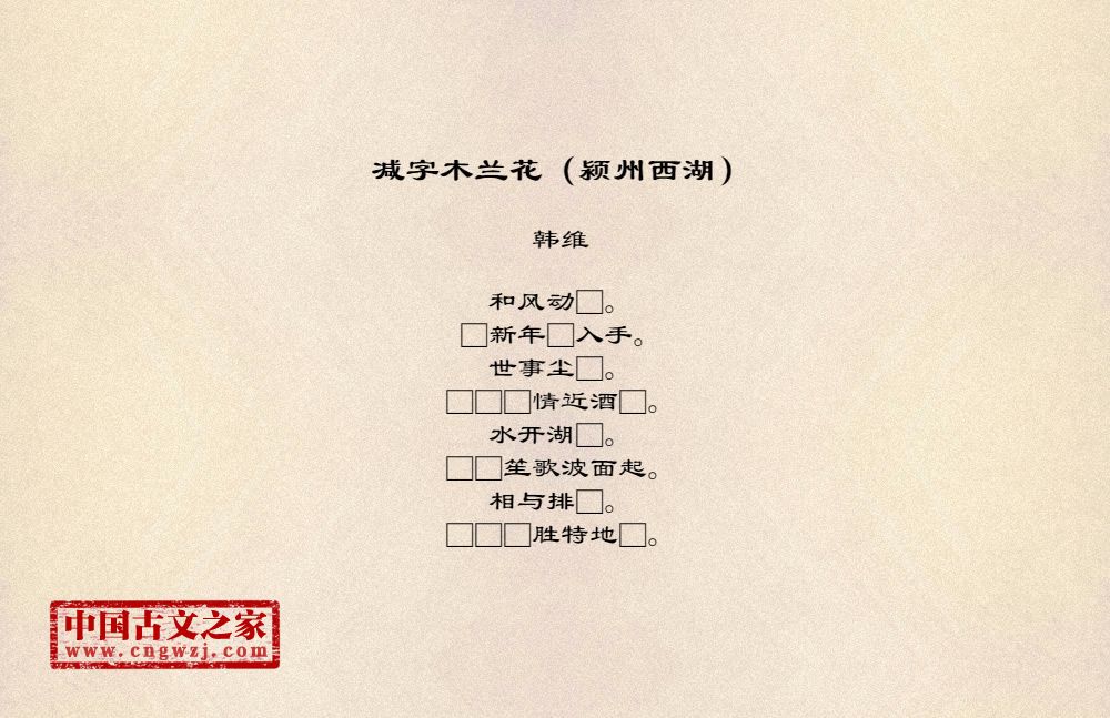 《减字木兰花(颍州西湖)》的原文打印版(韩维)