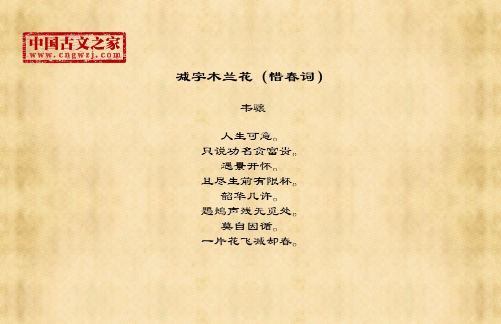 《减字木兰花(惜春词)》的原文打印版(韦骧)
