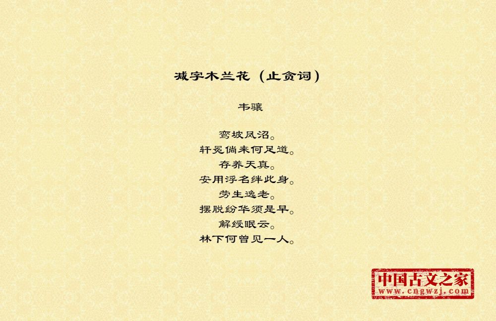 《减字木兰花(止贪词)》的原文打印版(韦骧)