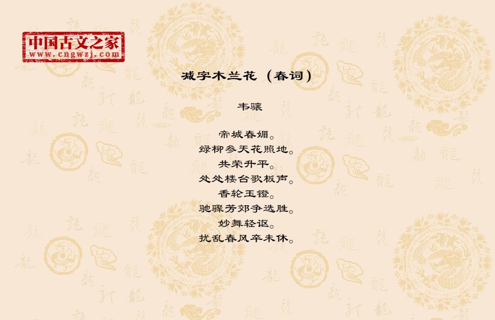 《减字木兰花(春词)》的原文打印版(韦骧)