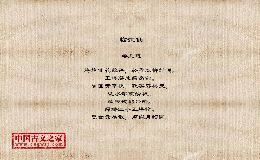 晏几道(1030-1106,一说1038—1110,一说1038-1112),男,汉族,字叔原,号小山,著名词人,抚州临川文港沙河(今属江西省南昌市进