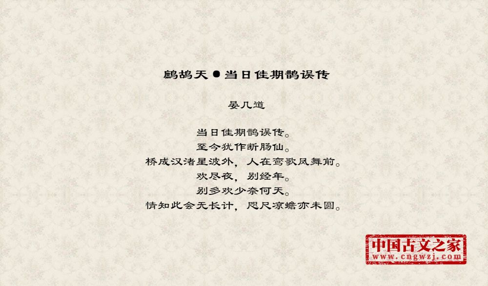 当日佳期鹊误传。至今犹作断肠仙。桥成汉渚星波外,人在鸾歌凤舞前。欢尽夜,别经年。别多欢少奈何天。情知此会无长计,咫尺凉蟾亦未圆。