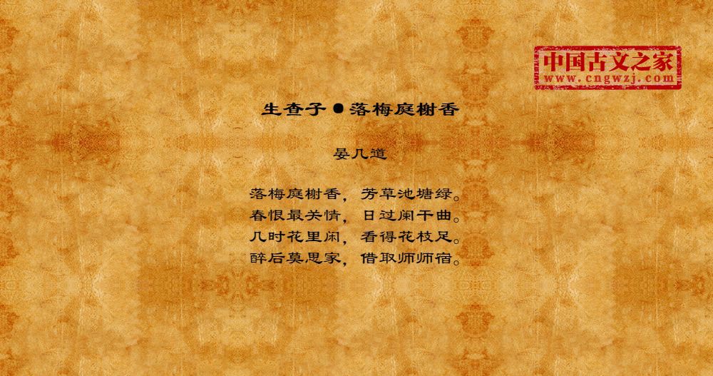落梅庭榭香,芳草池塘绿。春恨最关情,日过阑干曲。几时花里闲,看得花枝足。醉后莫思家,借取师师宿。