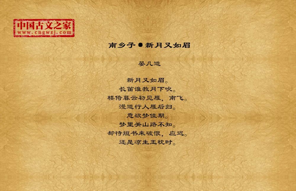 ①“新月”句:暗用五代牛希济《生查子》“新月曲如眉,未有团栾意”与唐王涯《秋思赠远》“不见乡书传雁足,唯看新月吐蛾眉”之意为后文的“行人”“短书”作伏笔。如眉,指月钩弯如眉状。
