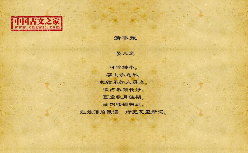 可怜娇小。掌上承恩早。把镜不知人易老。欲占朱颜长好。画堂秋月佳期。藏钩赌酒归迟。红烛泪前低语,绿笺花里新词。