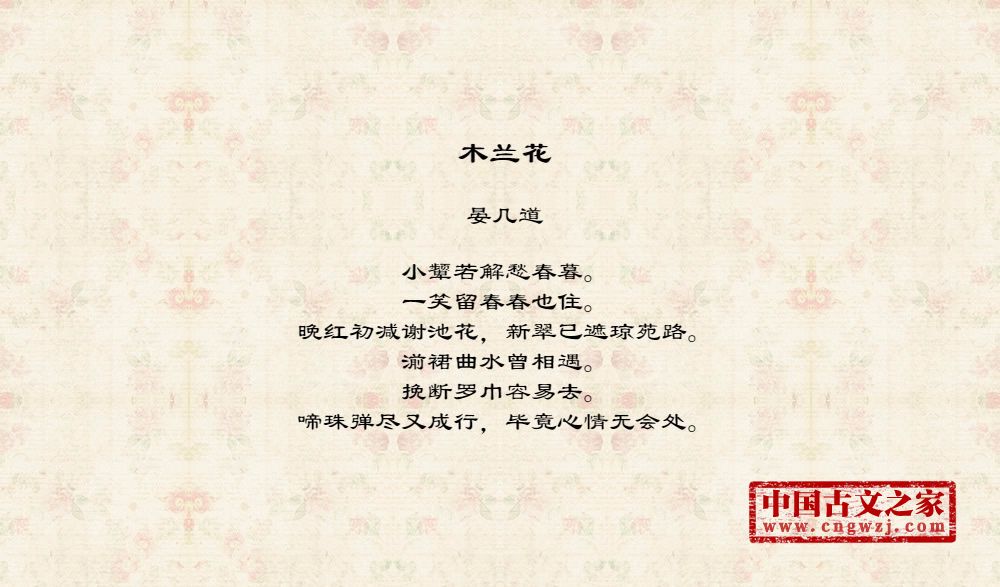 小颦若解愁春暮。一笑留春春也住。晚红初减谢池花,新翠已遮琼苑路。湔裙曲水曾相遇。挽断罗巾容易去。啼珠弹尽又成行,毕竟心情无会处。