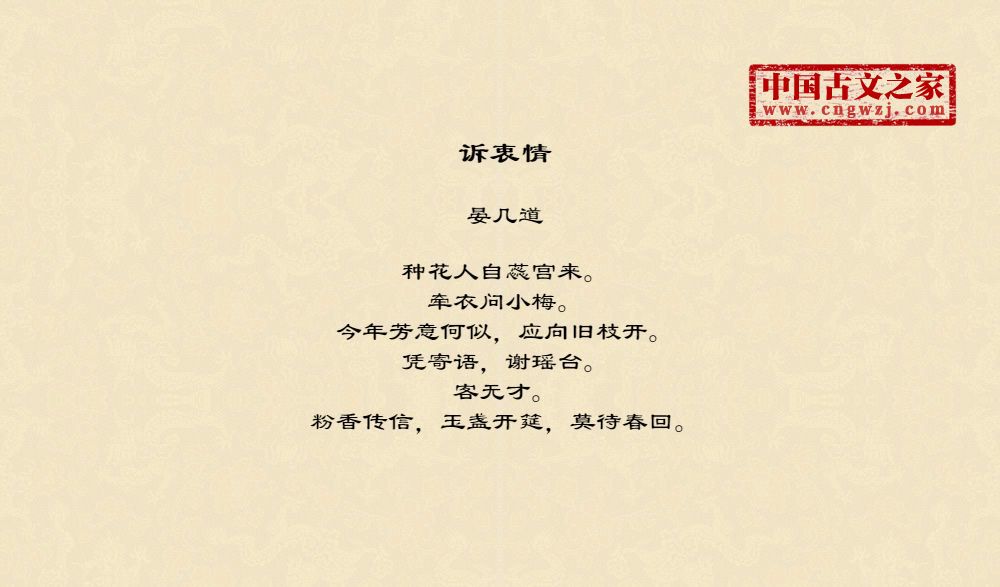 种花人自蕊宫来。牵衣问小梅。今年芳意何似,应向旧枝开。凭寄语,谢瑶台。客无才。粉香传信,玉盏开筵,莫待春回。