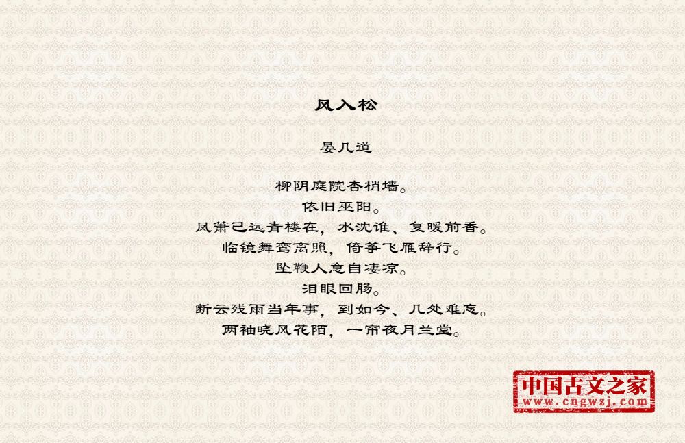 柳阴庭院杏梢墙。依旧巫阳。凤箫已远青楼在,水沈谁、复暖前香。临镜舞鸾离照,倚筝飞雁辞行。坠鞭人意自凄凉。泪眼回肠。断云残雨当年事,到如今、几处难忘。两袖晓风花陌,一帘夜月兰堂。