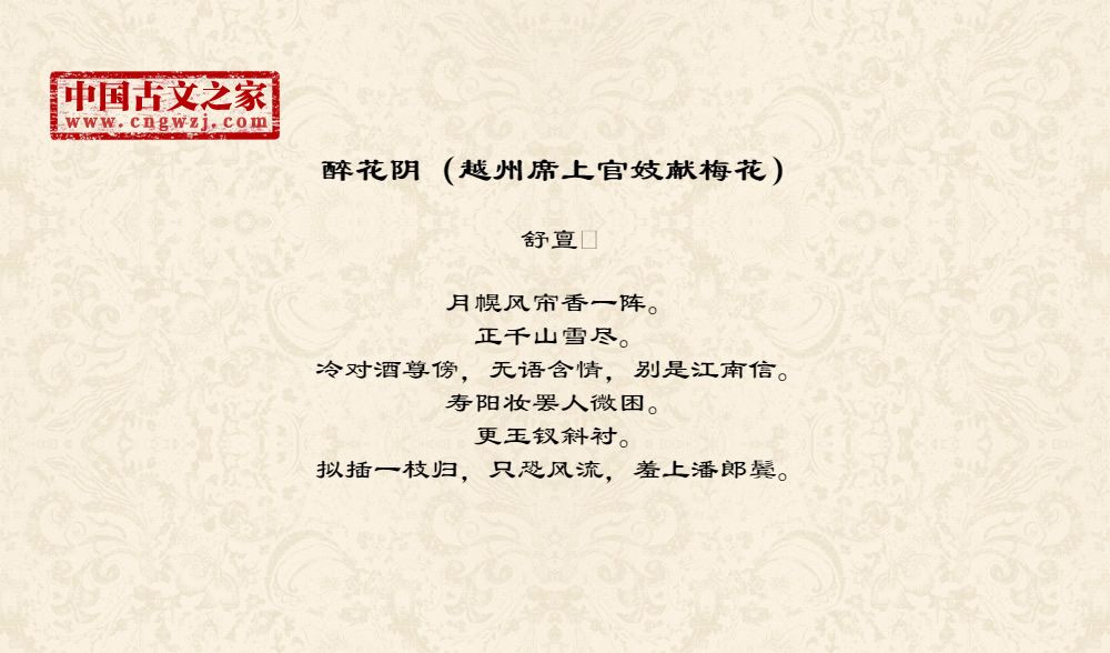 《醉花阴(越州席上官妓献梅花)》的原文打印版(舒亶)