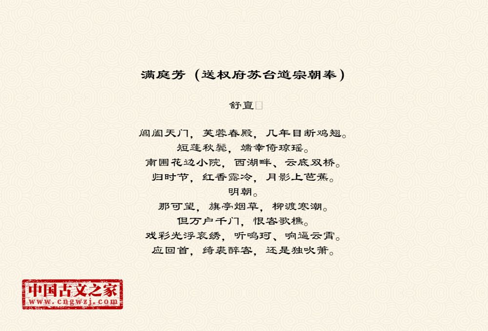 《满庭芳(送权府苏台道宗朝奉)》的原文打印版(舒亶)