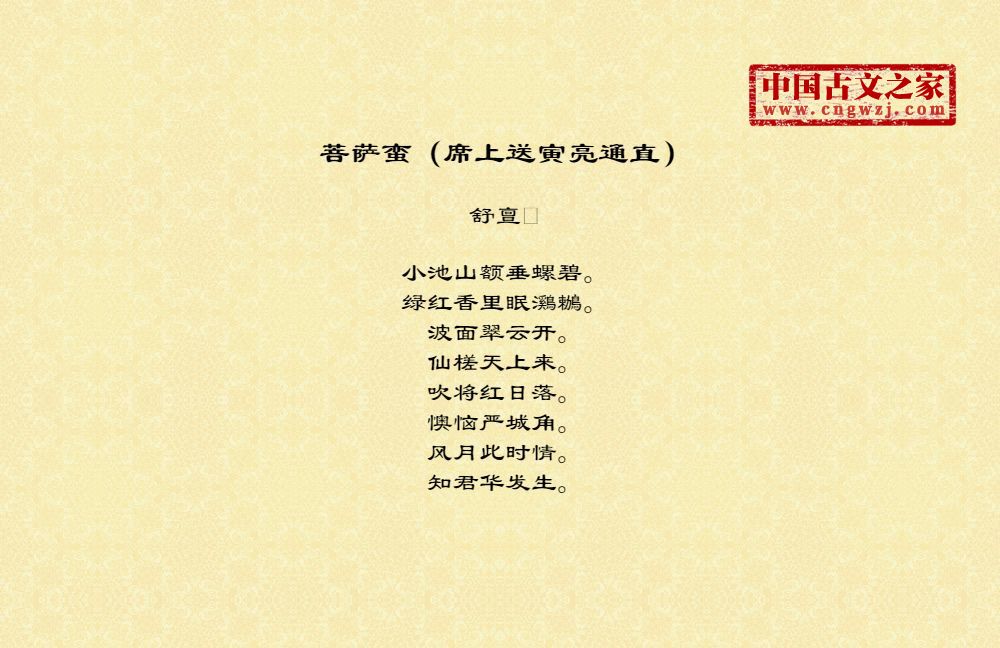 《菩萨蛮(席上送寅亮通直)》的原文打印版(舒亶)
