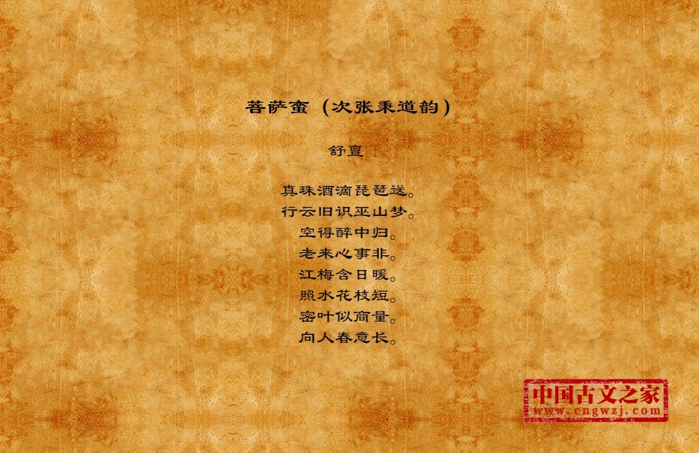 《菩萨蛮(次张秉道韵)》的原文打印版(舒亶)