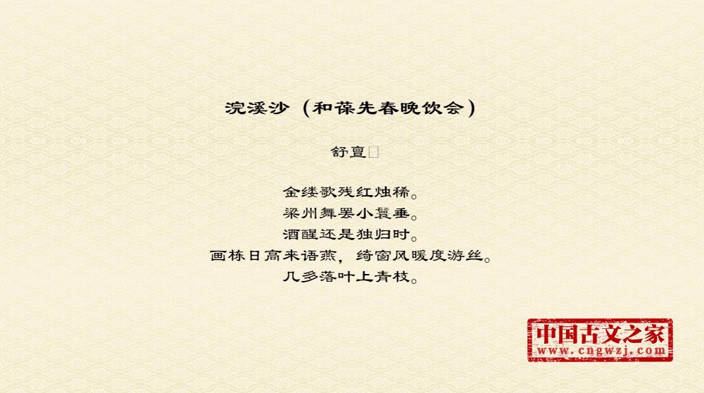 《浣溪沙(和葆先春晚饮会)》的原文打印版(舒亶)