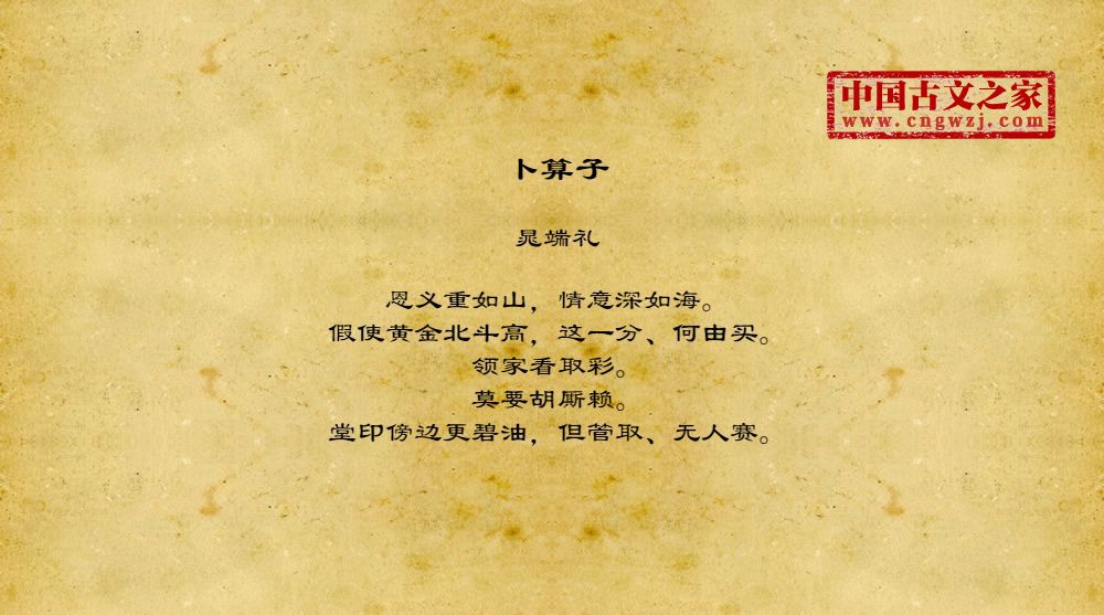 恩义重如山,情意深如海。假使黄金北斗高,这一分、何由买。领家看取彩。莫要胡厮赖。堂印傍边更碧油,但管取、无人赛。