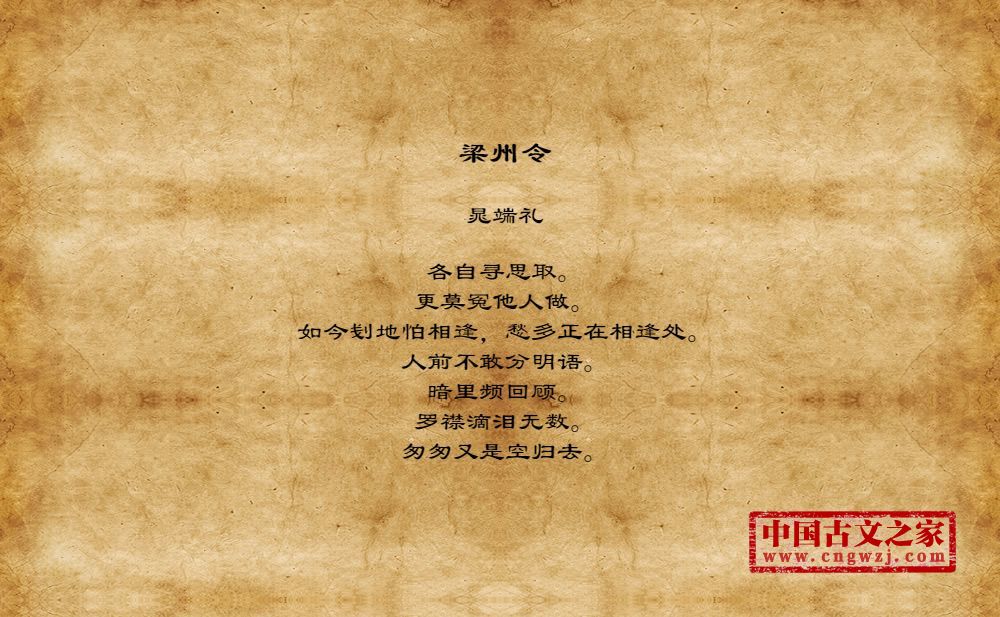 各自寻思取。更莫冤他人做。如今刬地怕相逢,愁多正在相逢处。人前不敢分明语。暗里频回顾。罗襟滴泪无数。匆匆又是空归去。