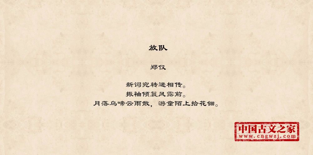 说明:古文之家的工作重心是对古诗文进行校对并注音,我们所提供的译文、注释均来自互联网收集聚合,仅供参考,文章所涉及的字、词发音请以拼音版作为主要参考。
