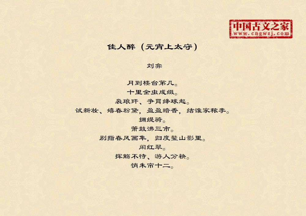 《佳人醉(元宵上太守)》的原文打印版(刘弇)