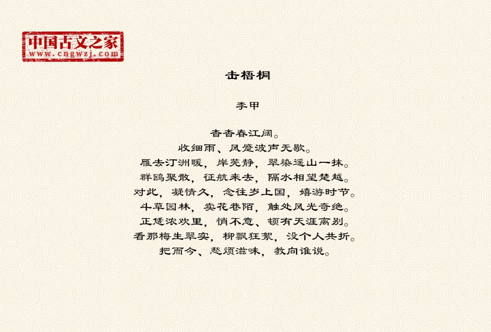 说明:古文之家的工作重心是对古诗文进行校对并注音,我们所提供的译文、注释均来自互联网收集聚合,仅供参考,文章所涉及的字、词发音请以拼音版作为主要参考。