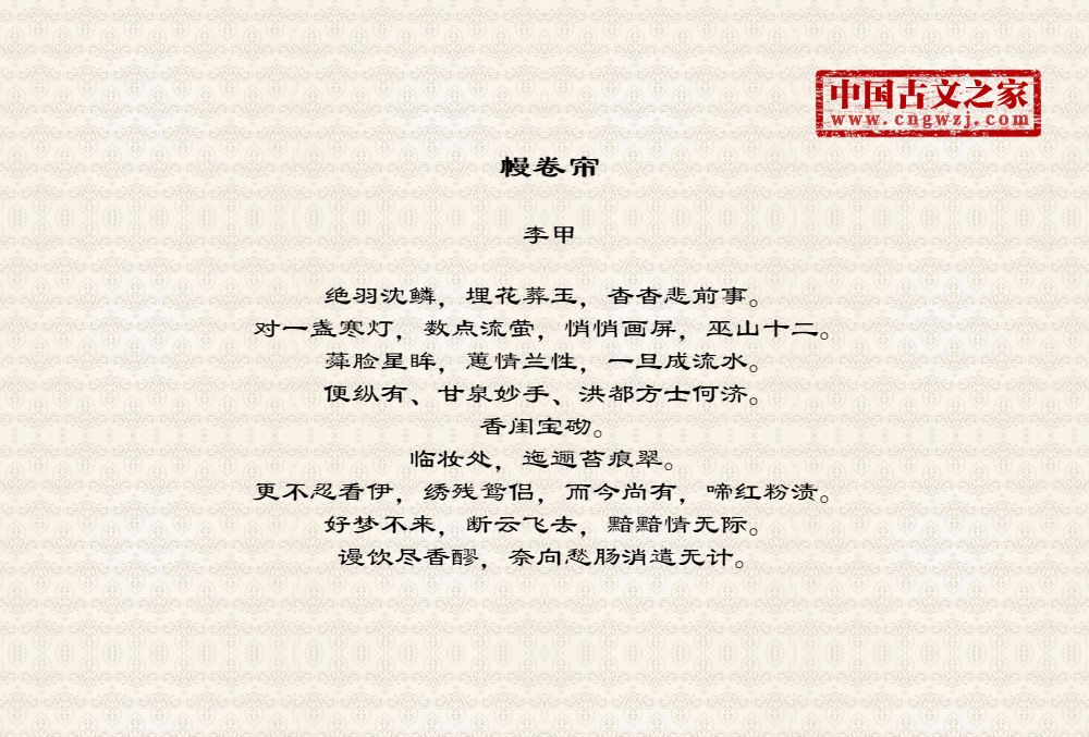 对一盏寒灯,数点流萤,悄悄画屏,巫山十二。