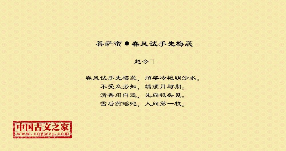 《菩萨蛮·春风试手先梅蕊》的原文打印版(赵令)