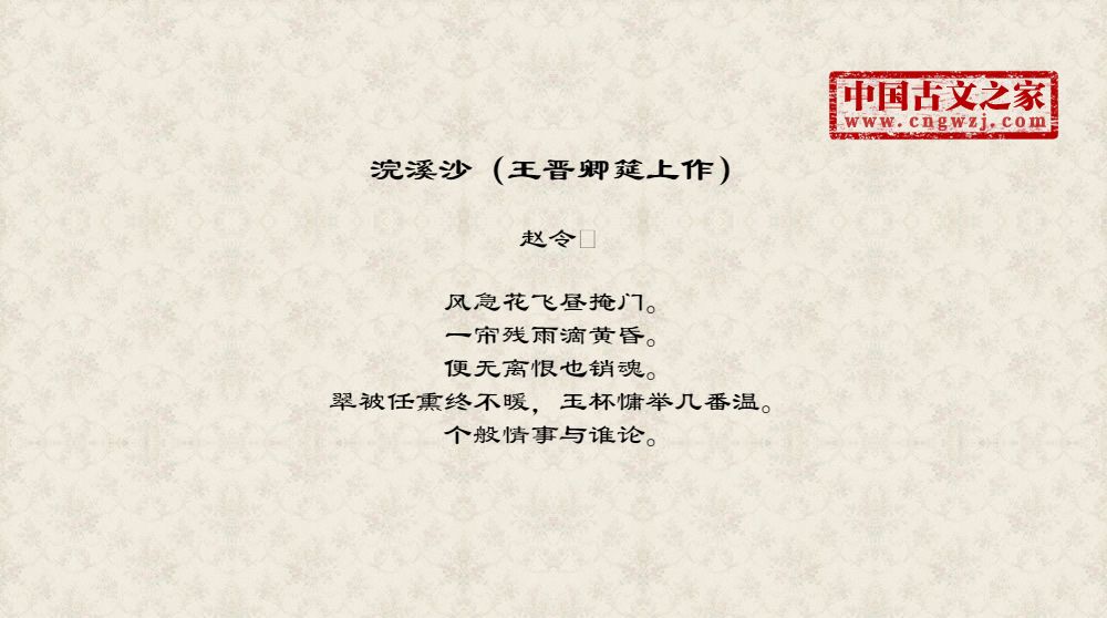 《浣溪沙(王晋卿筵上作)》的原文打印版(赵令)