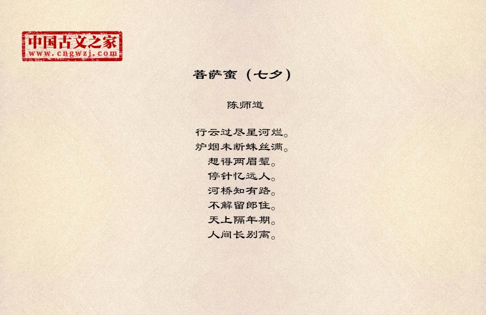 行云过尽星河烂。炉烟未断蛛丝满。想得两眉颦。停针忆远人。河桥知有路。不解留郎住。天上隔年期。人间长别离。