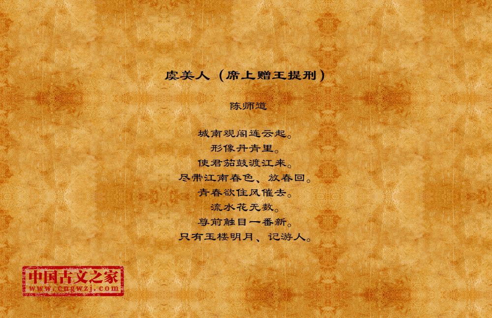 城南观阁连云起。形像丹青里。使君笳鼓渡江来。尽带江南春色、放春回。青春欲住风催去。流水花无数。尊前触目一番新。只有玉楼明月、记游人。