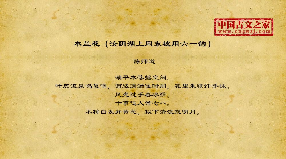 《木兰花(汝阴湖上同东坡用六一韵)》由陈师道创作
