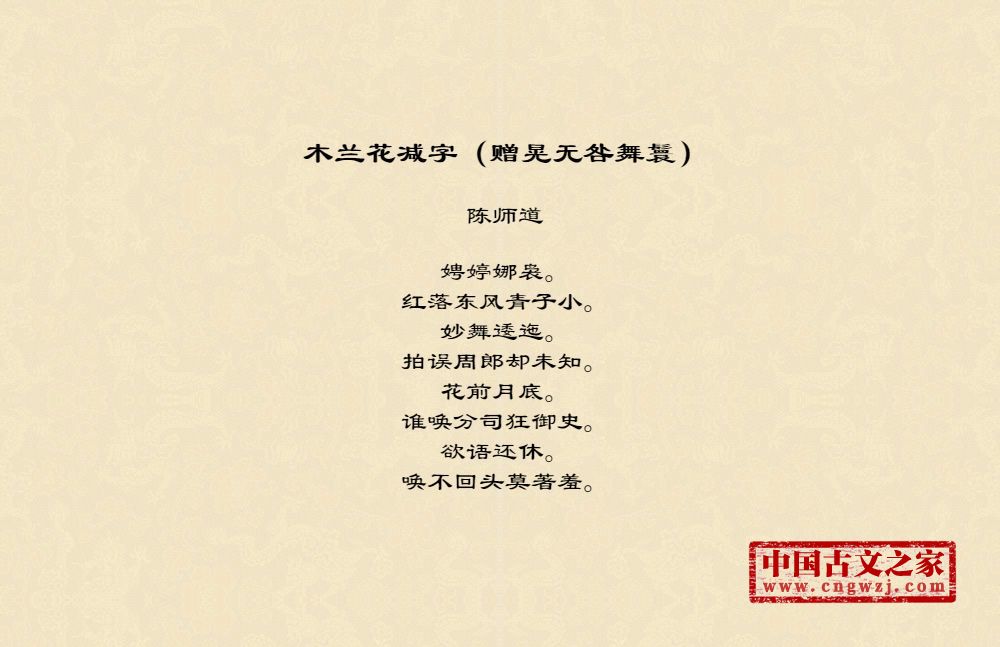 《木兰花减字(赠晃无咎舞鬟)》由陈师道创作