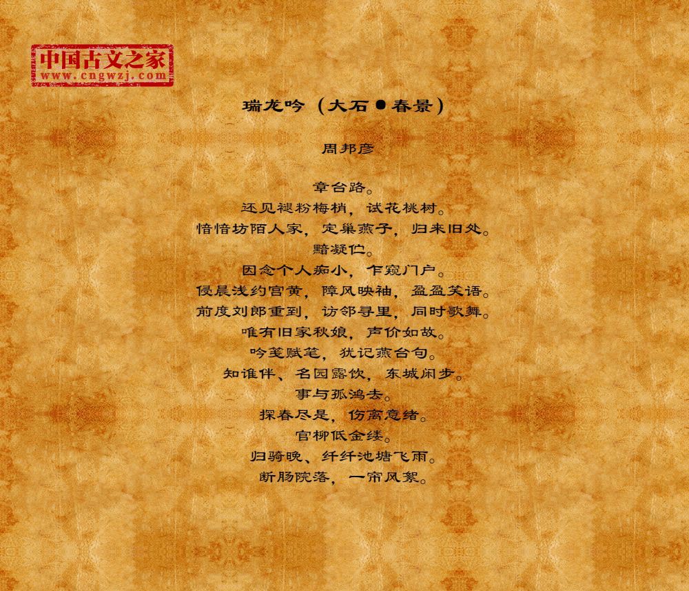 周邦彦(1056年-1121年),中国北宋末期著名的词人,字美成,号清真居士,汉族,钱塘(今浙江杭州)人。历官太学正、庐州教授、知溧水县等。徽宗时为徽
