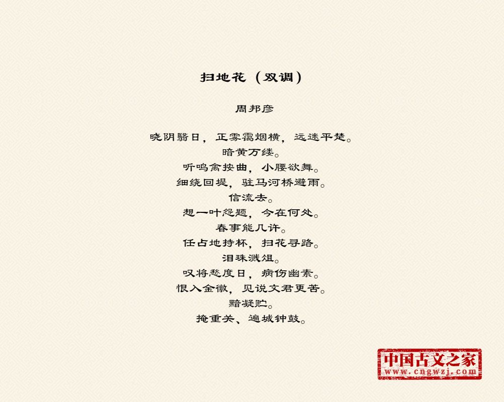 周邦彦(1056年-1121年),中国北宋末期著名的词人,字美成,号清真居士,汉族,钱塘(今浙江杭州)人。历官太学正、庐州教授、知溧水县等。徽宗时为徽