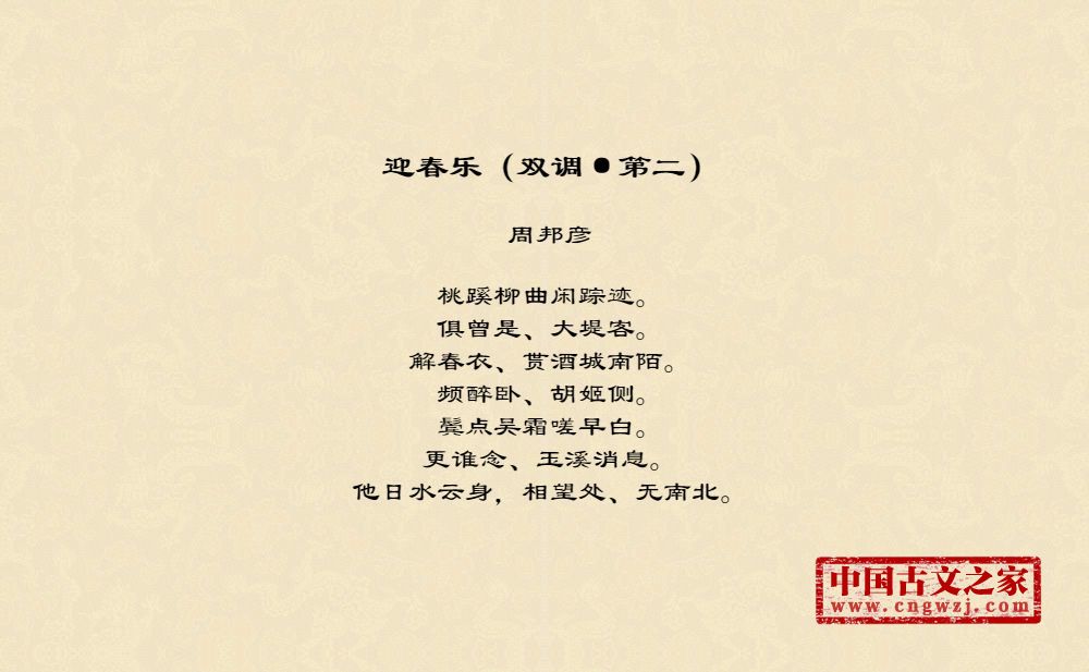 周邦彦(1056年-1121年),中国北宋末期著名的词人,字美成,号清真居士,汉族,钱塘(今浙江杭州)人。历官太学正、庐州教授、知溧水县等。徽宗时为徽
