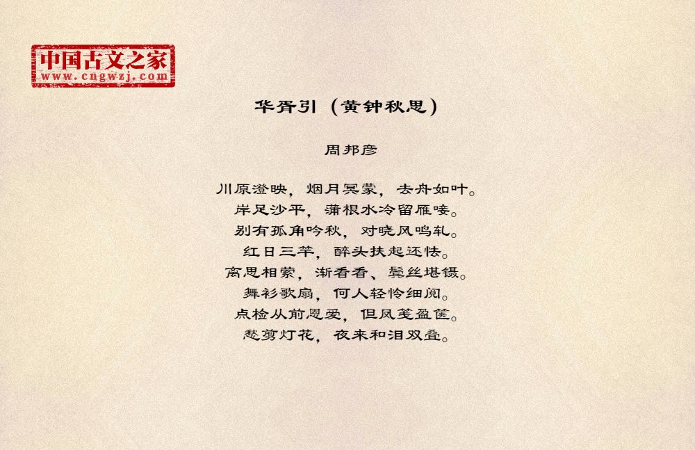 周邦彦(1056年-1121年),中国北宋末期著名的词人,字美成,号清真居士,汉族,钱塘(今浙江杭州)人。历官太学正、庐州教授、知溧水县等。徽宗时为徽