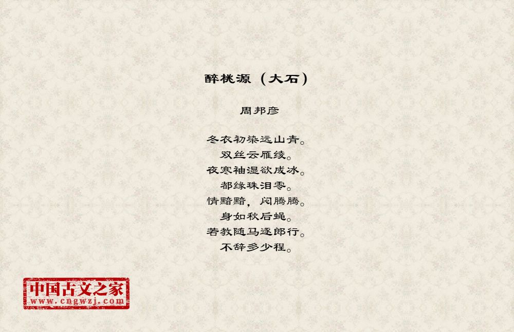 周邦彦(1056年-1121年),中国北宋末期著名的词人,字美成,号清真居士,汉族,钱塘(今浙江杭州)人。历官太学正、庐州教授、知溧水县等。徽宗时为徽