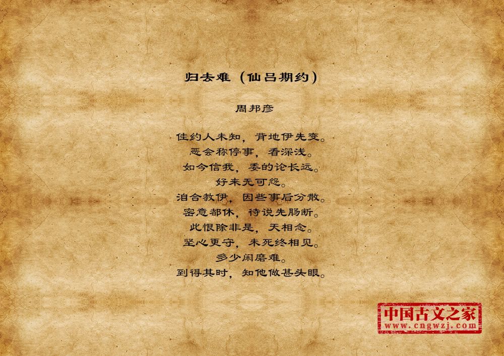 周邦彦(1056年-1121年),中国北宋末期著名的词人,字美成,号清真居士,汉族,钱塘(今浙江杭州)人。历官太学正、庐州教授、知溧水县等。徽宗时为徽