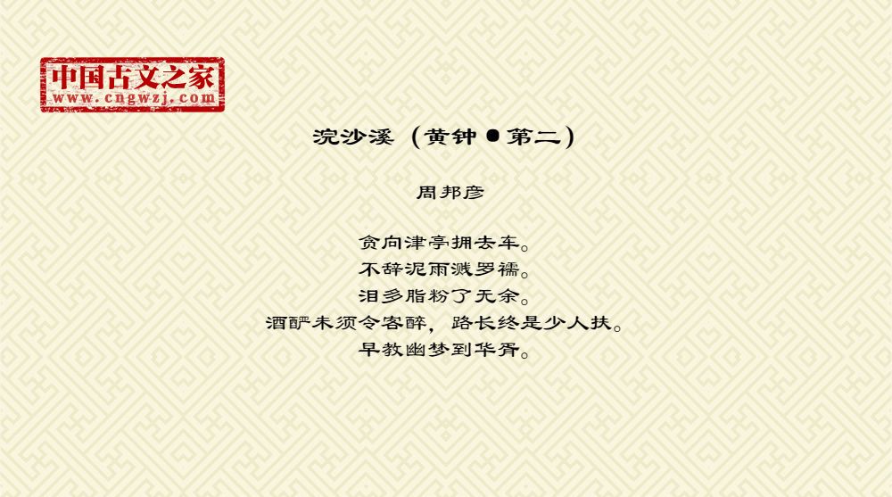 贪向津亭拥去车。不辞泥雨溅罗襦。泪多脂粉了无余。酒酽未须令客醉,路长终是少人扶。早教幽梦到华胥。