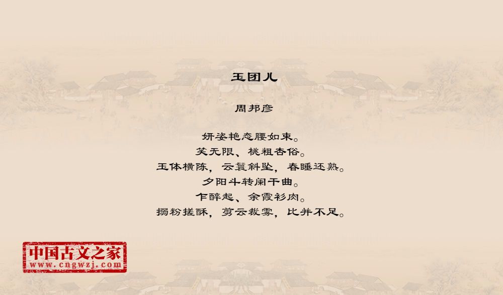 周邦彦(1056年-1121年),中国北宋末期著名的词人,字美成,号清真居士,汉族,钱塘(今浙江杭州)人。历官太学正、庐州教授、知溧水县等。徽宗时为徽