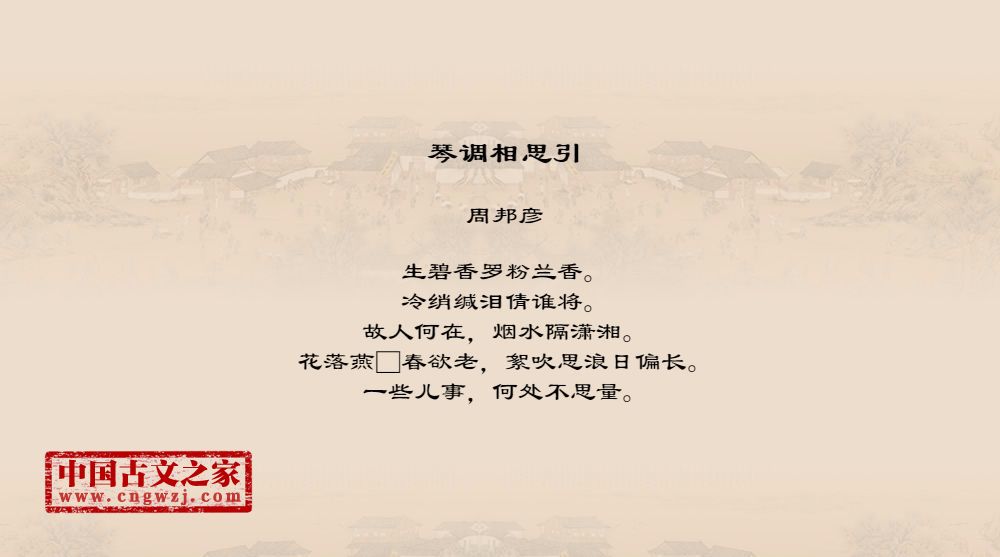 周邦彦(1056年-1121年),中国北宋末期著名的词人,字美成,号清真居士,汉族,钱塘(今浙江杭州)人。历官太学正、庐州教授、知溧水县等。徽宗时为徽