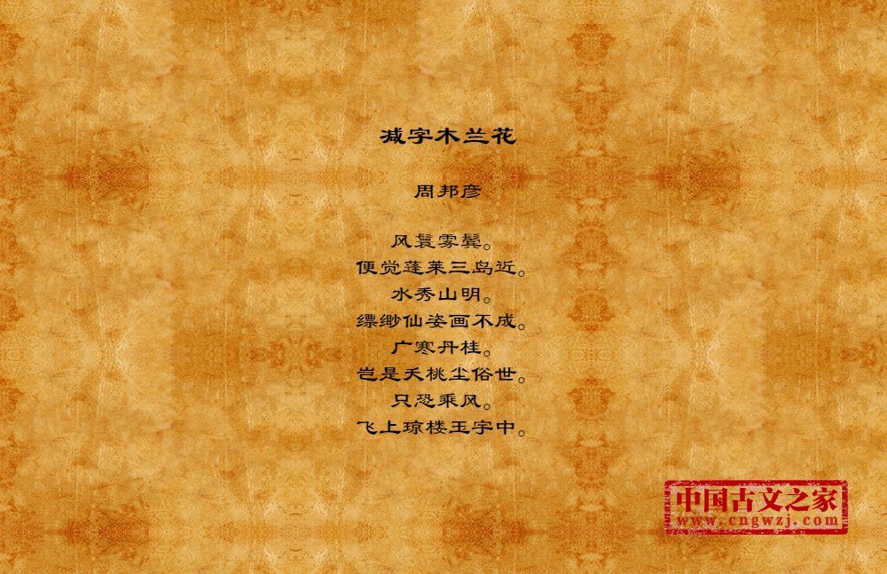 周邦彦(1056年-1121年),中国北宋末期著名的词人,字美成,号清真居士,汉族,钱塘(今浙江杭州)人。历官太学正、庐州教授、知溧水县等。徽宗时为徽