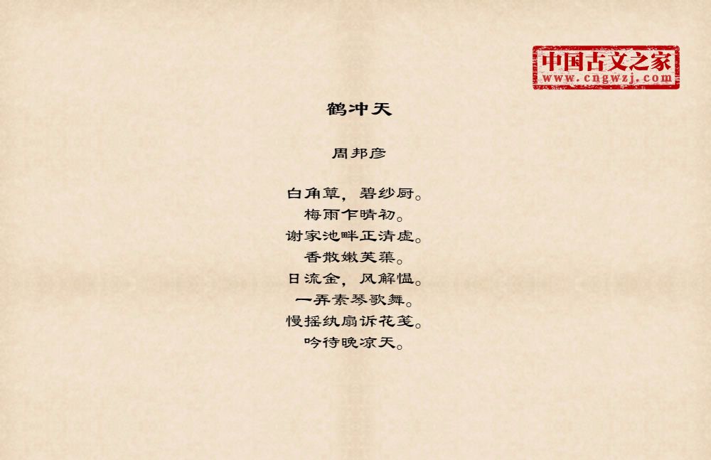 周邦彦(1056年-1121年),中国北宋末期著名的词人,字美成,号清真居士,汉族,钱塘(今浙江杭州)人。历官太学正、庐州教授、知溧水县等。徽宗时为徽