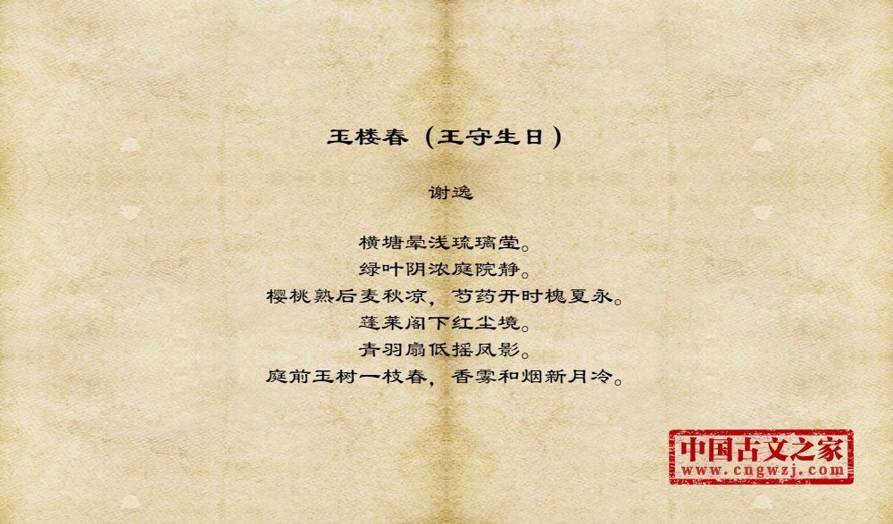 玉楼春(王守生日)