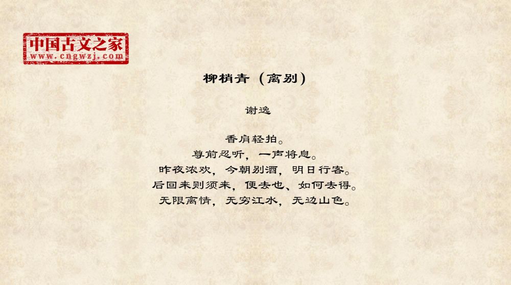 无限离情,无穷江水,无边山色。