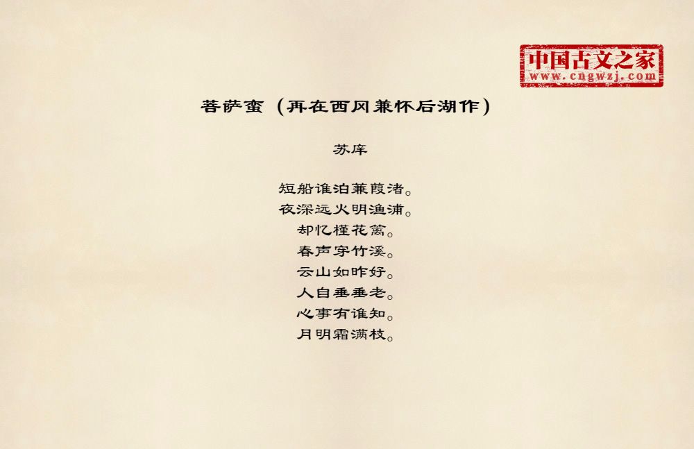 《菩萨蛮(再在西冈兼怀后湖作)》的原文打印版(苏庠)