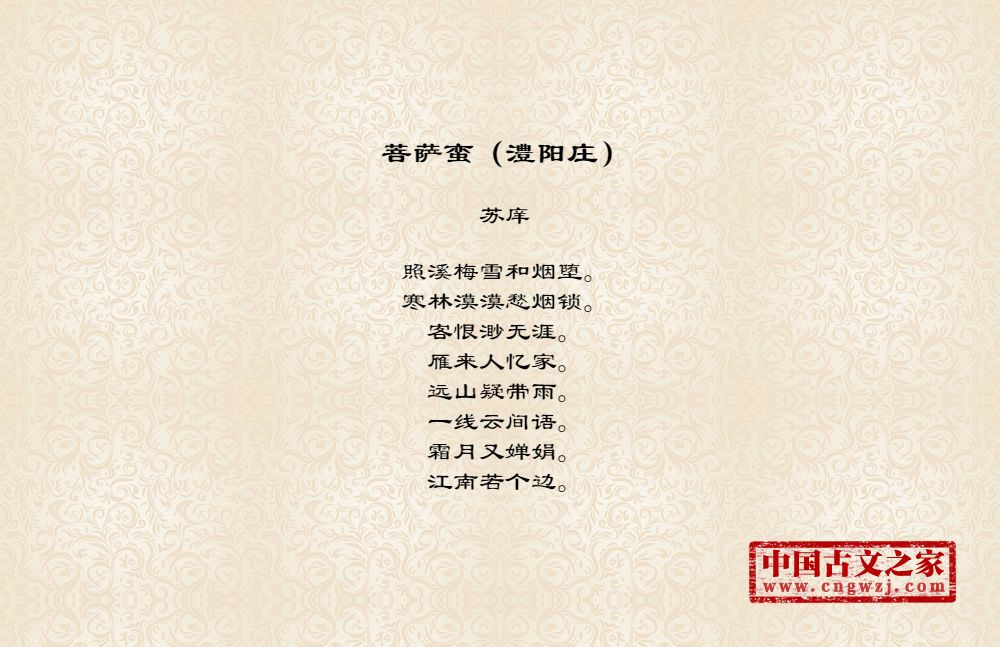 照溪梅雪和烟堕。寒林漠漠愁烟锁。客恨渺无涯。雁来人忆家。远山疑带雨。一线云间语。霜月又婵娟。江南若个边。