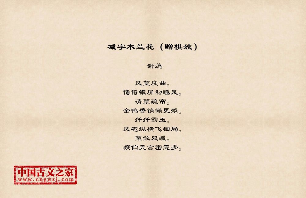 《减字木兰花(赠棋妓)》的原文打印版(谢薖)