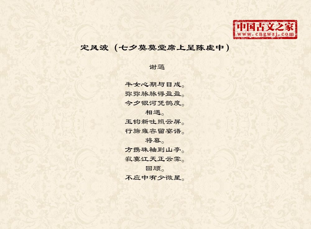 《定风波(七夕莫莫堂席上呈陈虚中)》的原文打印版(谢薖)