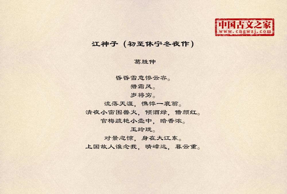 《江神子(初至休宁冬夜作)》由葛胜仲创作