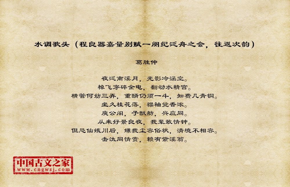 《水调歌头(程良器嘉量别赋一阕纪泛舟之会,往返次韵)》的原文打印版(葛胜仲)