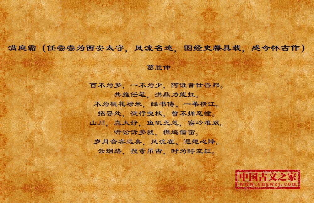 满庭霜(任尝尝为西安太守,风流名迹,图经史牒具载,感今怀古作)