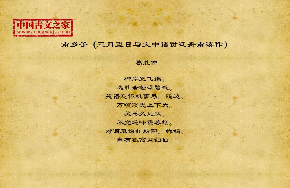 《南乡子(三月望日与文中诸贤泛舟南溪作)》由葛胜仲创作